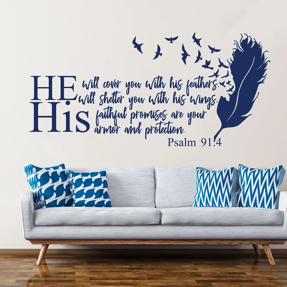 Bible Verse Wall Decals Quotes He Will Cover You With His Feathers Christian Psalm 91 4 Wall Decal Viny Home Bedroom Decor Z963 Wall Stickers Aliexpress