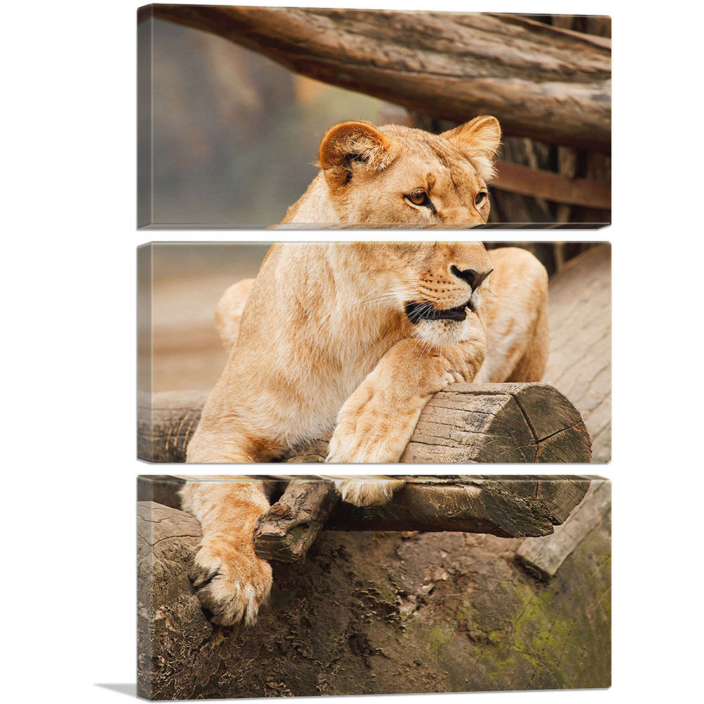 Artcanvas Lion Sitting On The Branch Home Decor 3 Piece Wrapped Canvas Photograph Wayfair