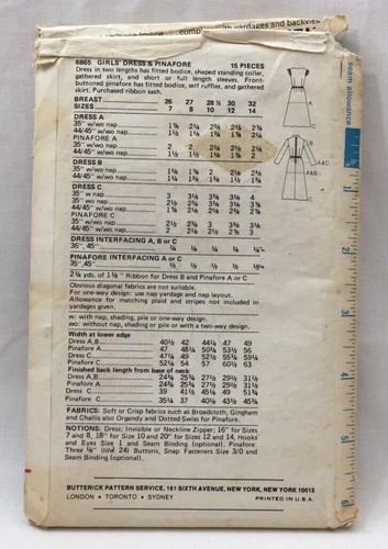 1960s Butterick Sewing Pattern 6865 Girls Dress Pinafore Size 10 Vintage 5061 Ebay