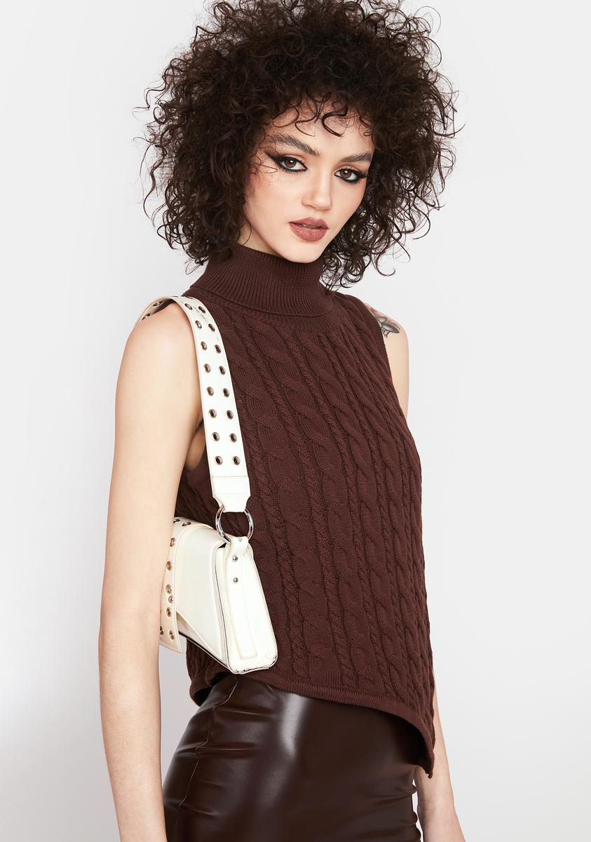 Asymmetric Hem Turtleneck Sleeveless Knit Sweater Brown Dolls Kill